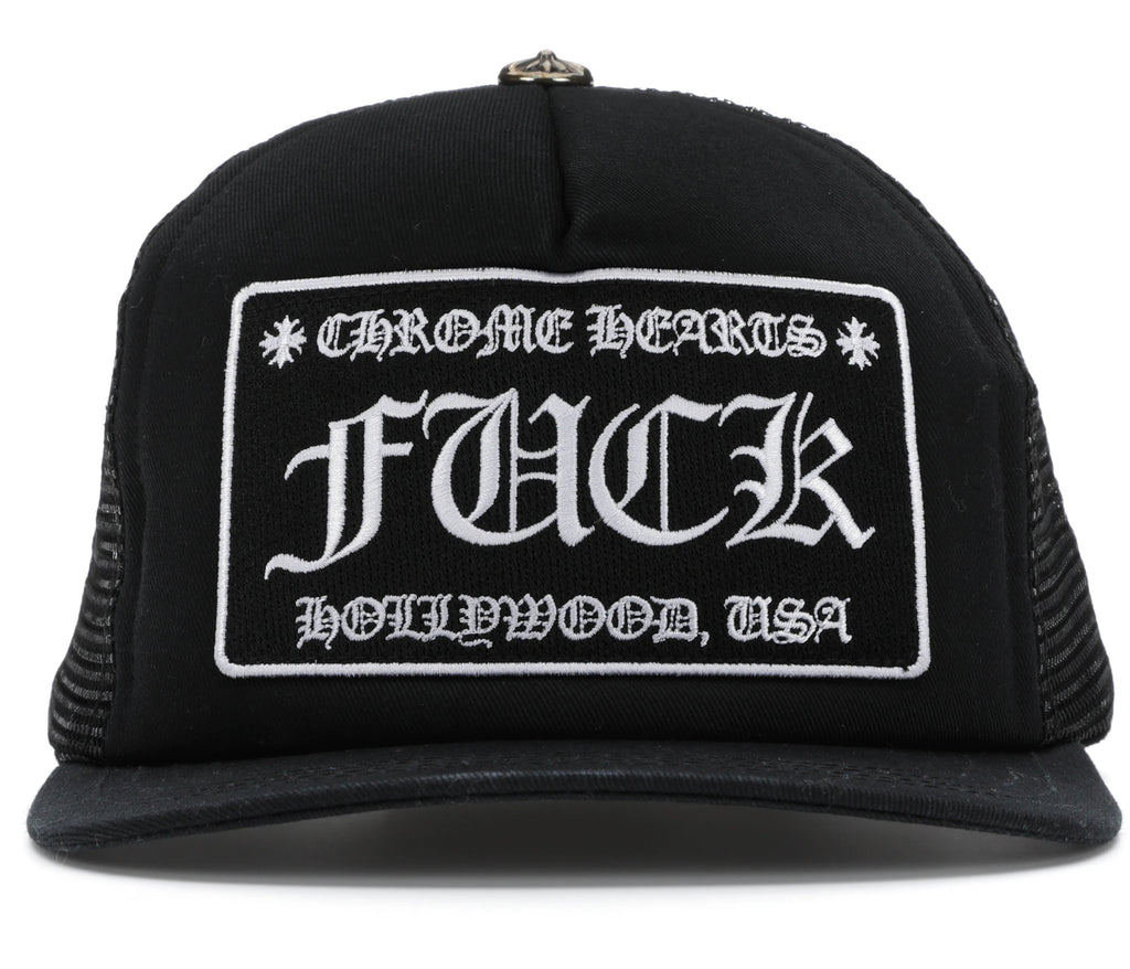 Chrome Hearts FUCK Hollywood Trucker Hat Black/Black