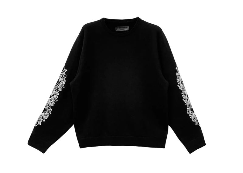 Chrome Hearts Cashmere Embroidered Floral Sleeve Black Sweater