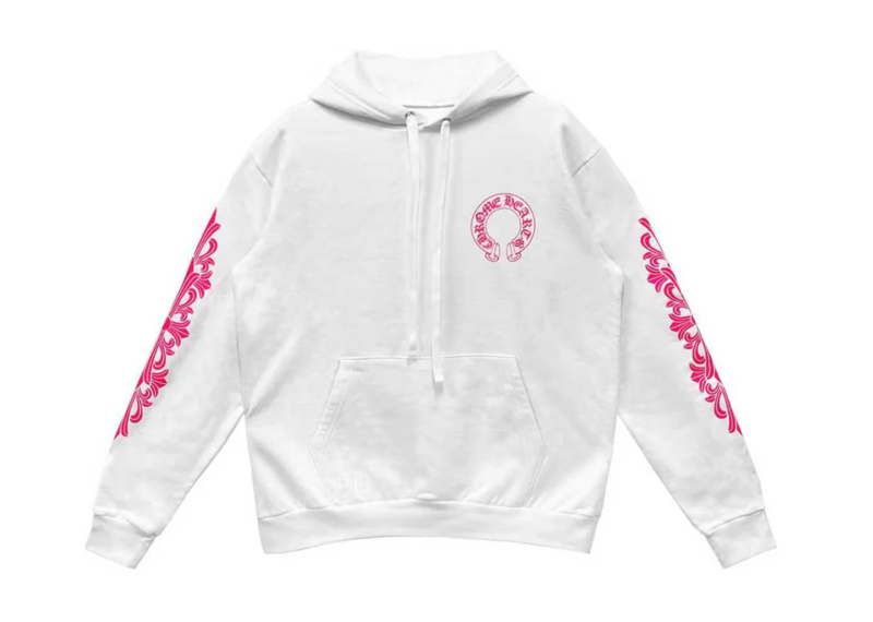 Chrome Hearts Horseshoe Floral Sleeve Hoodie White/Pink