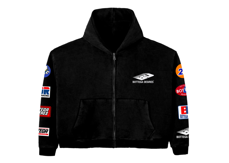 Bottega Desires Patches Black Zip Up Hoodie - M is backordered and will ship as soon as it is back in stock.