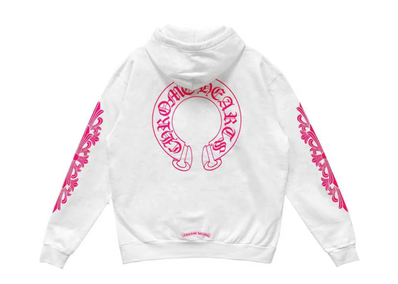 Chrome Hearts Horseshoe Floral Sleeve Hoodie White/Pink