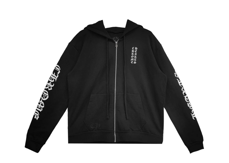 Chrome Hearts Vertical Logo Zip Up Hoodie Black