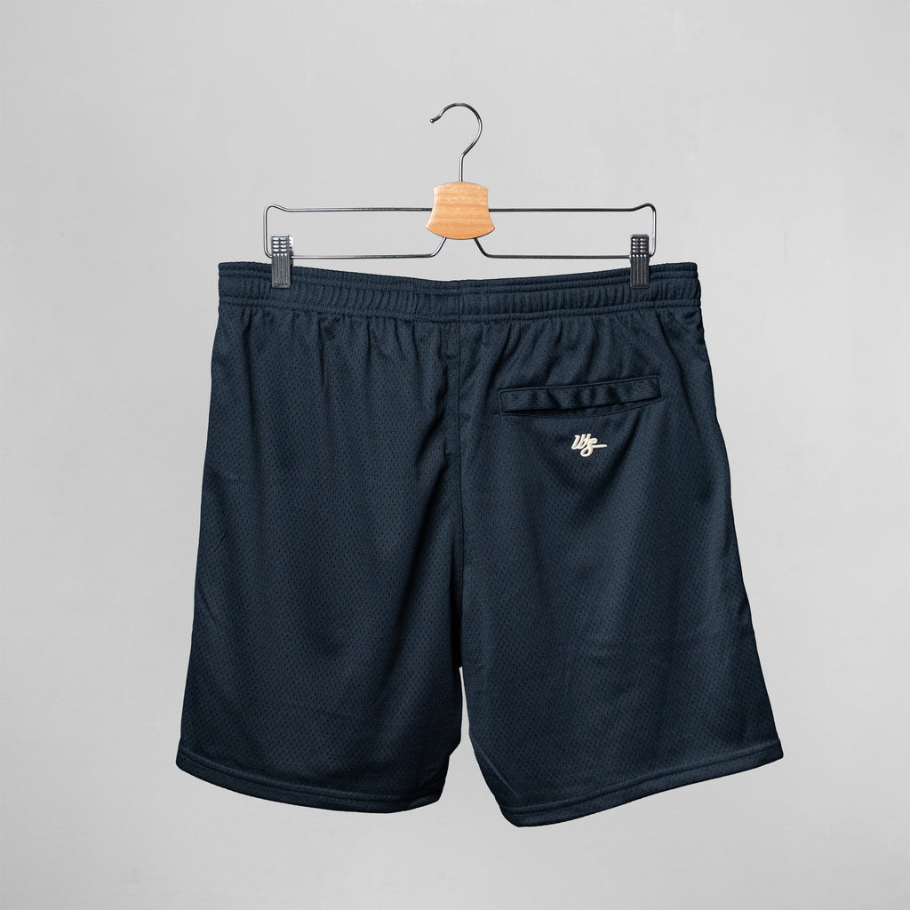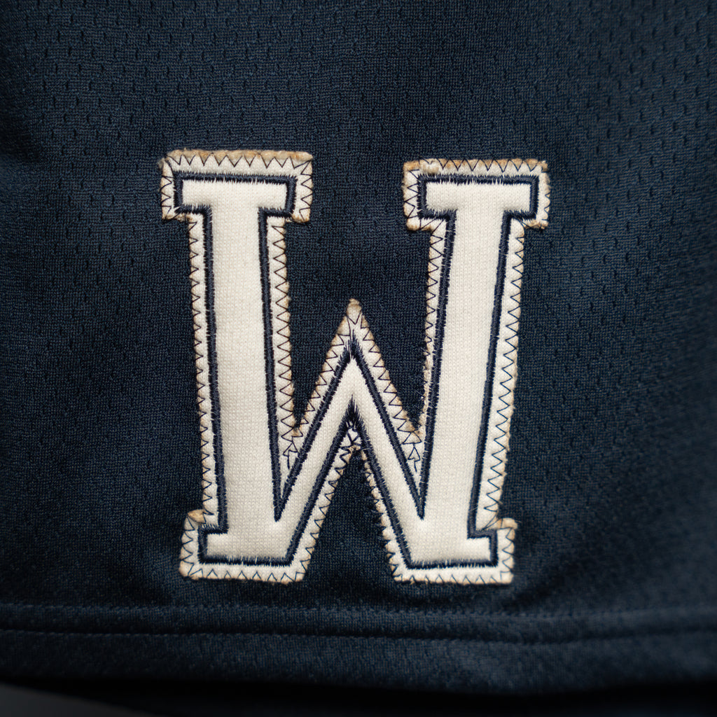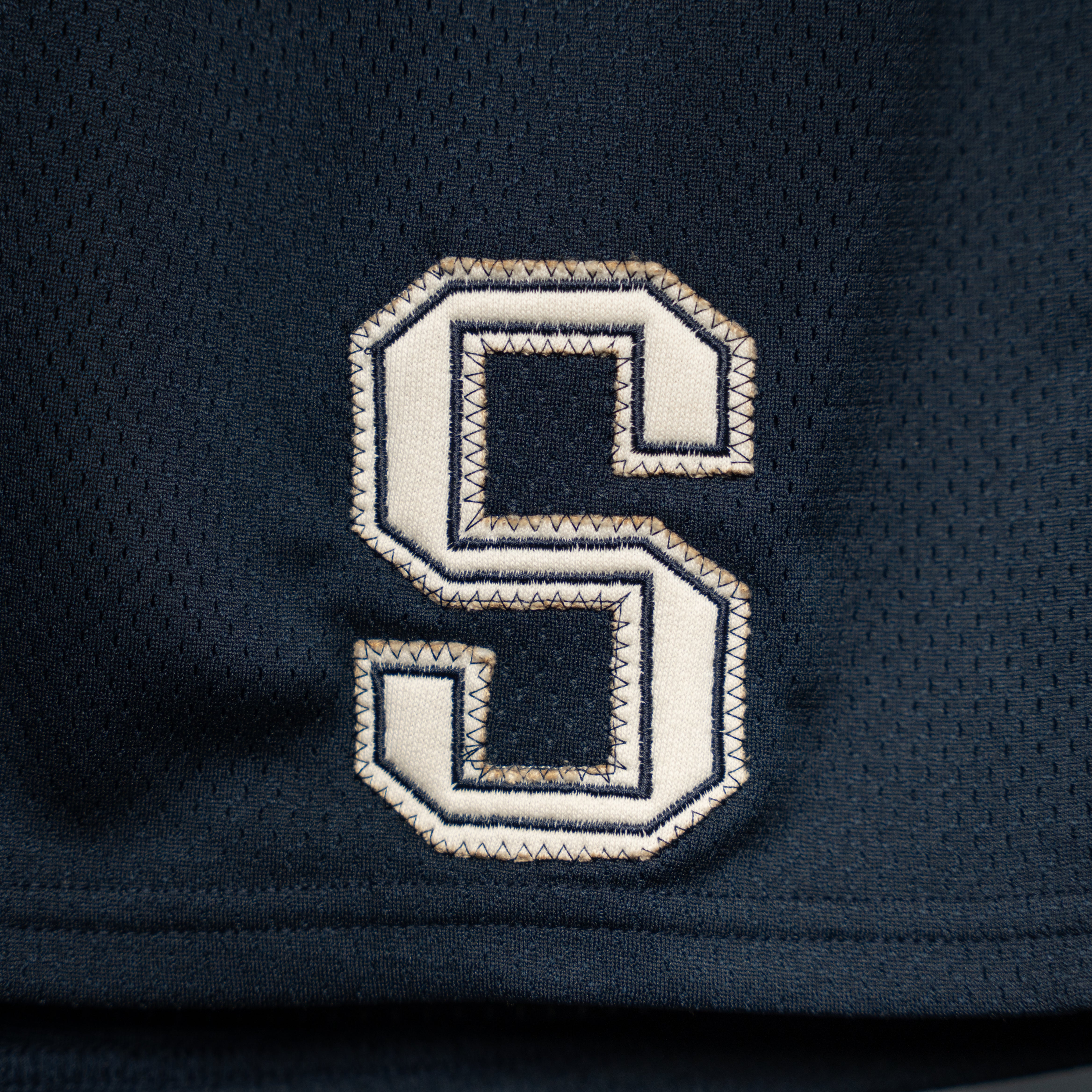 High-quality navy mesh shorts featuring light-cream appliqué W and S patches placed on each leg, they bring a classic varsity inspired detailing that speaks to Wilson’s Stuff craftsmanship and passion for sports.