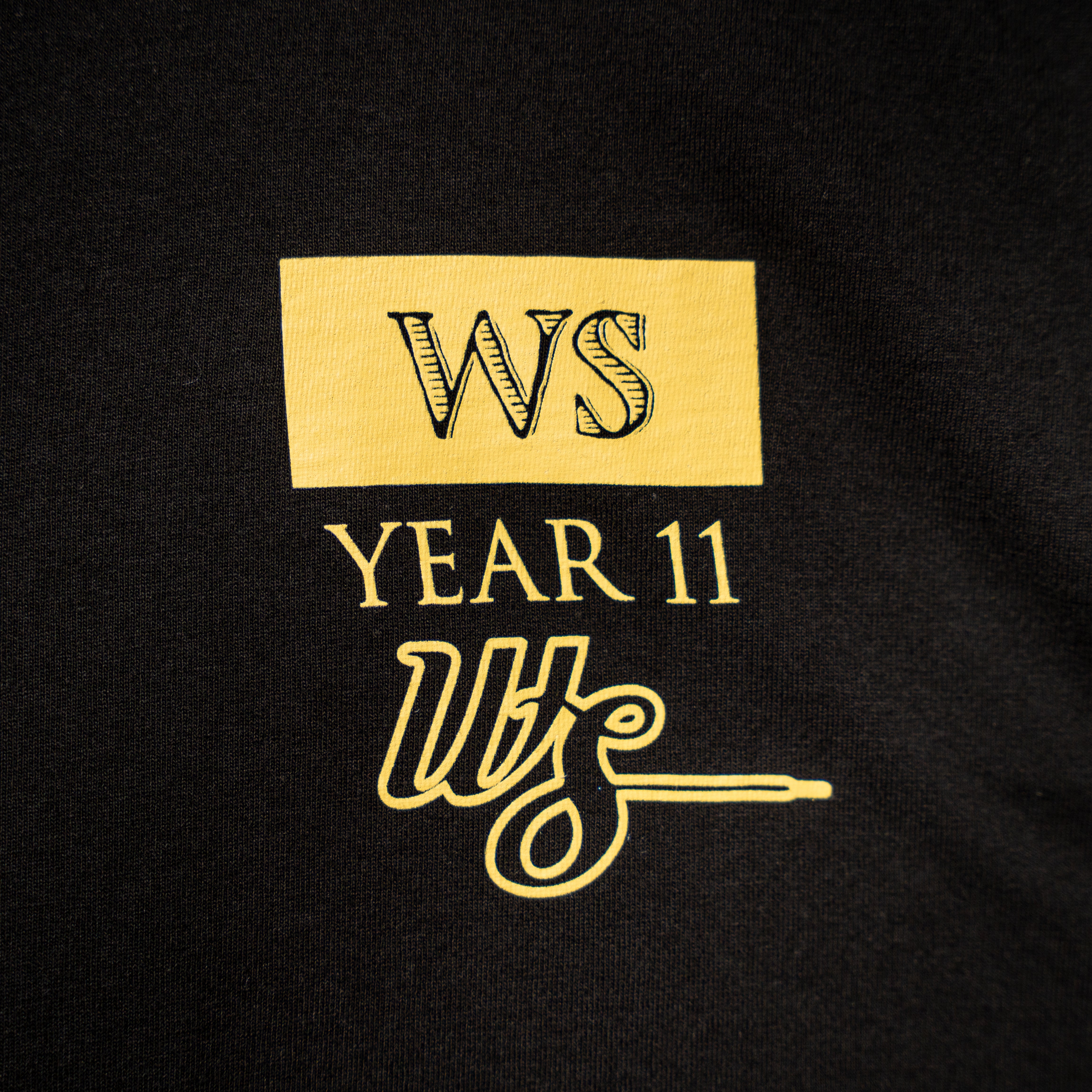 The front features a clean left-chest screen print, a subtle emblem marking the milestone.