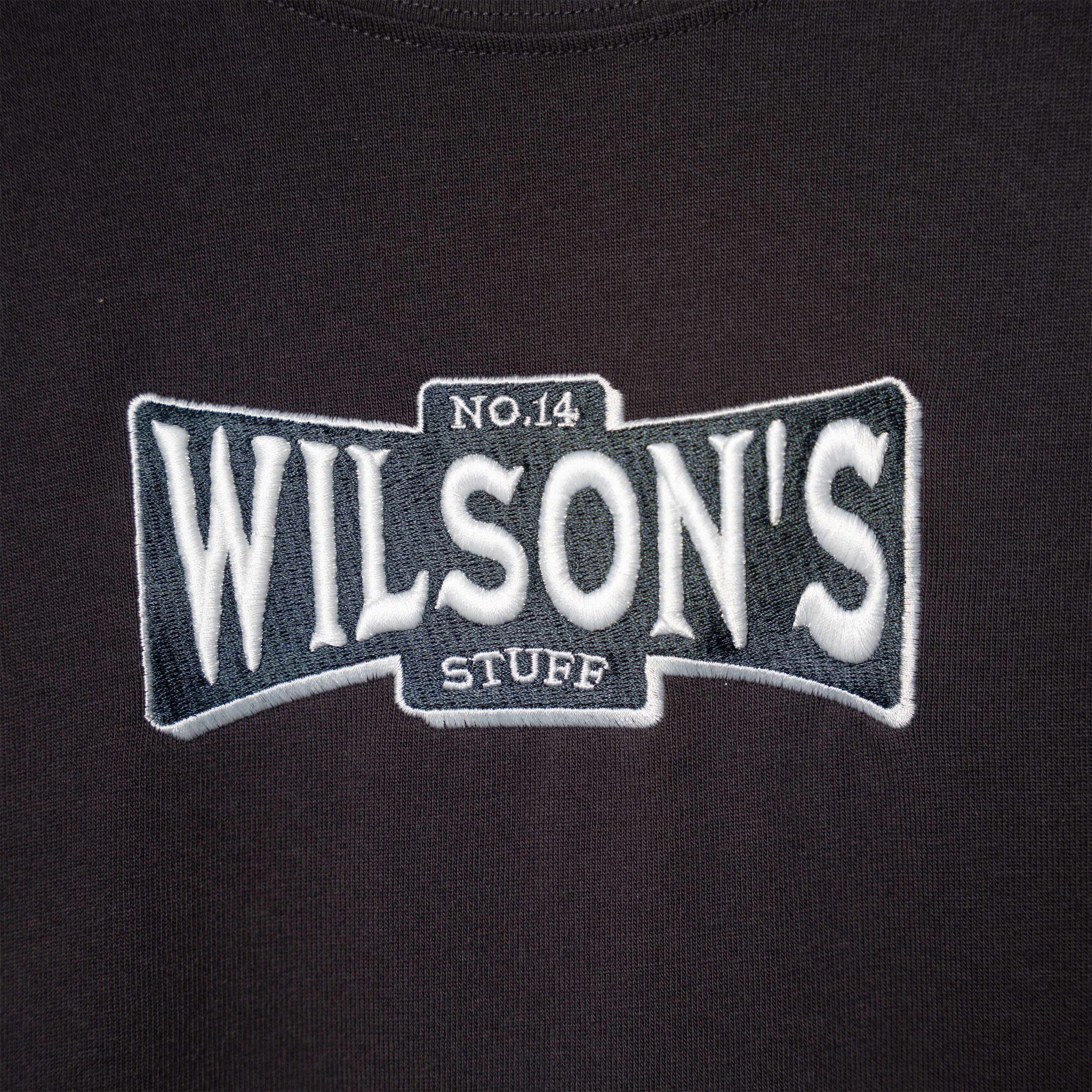 The No.14 Legacy Tee features our bold embroidered Wilson’s crest in a deep tonal grey and white over premium grey cotton. Designed to feel heavyweight, structured, and elevated — this is not your average basic tee.