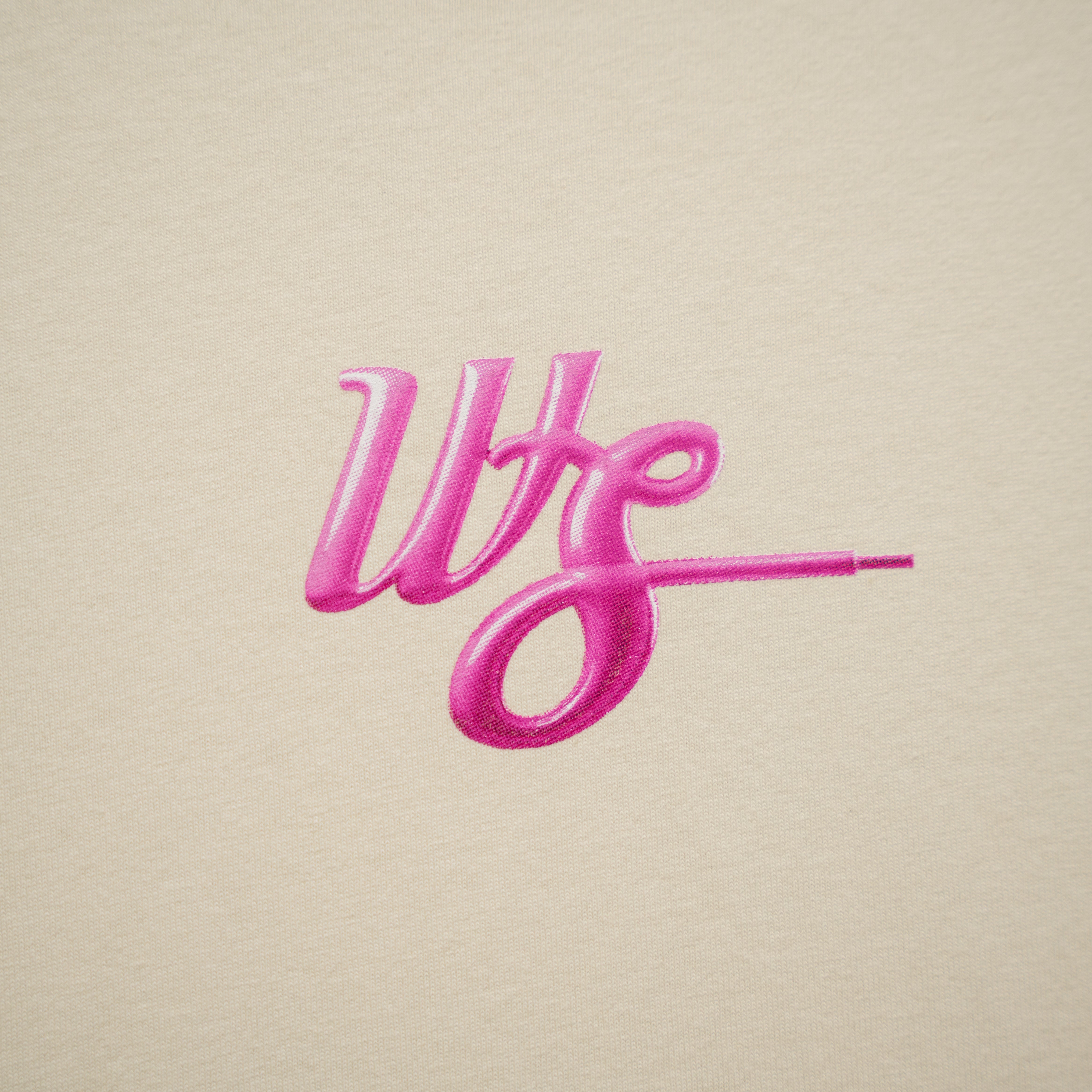 A cream garment-dye tee featuring an inflated WS balloon print. Glossy highlights and soft curves give the logo a bold, lifelike 3-D finish.