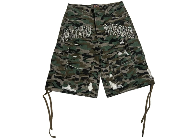 Bottega Desires Camo Distressed Cargo Shorts - 30 is backordered and will ship as soon as it is back in stock.